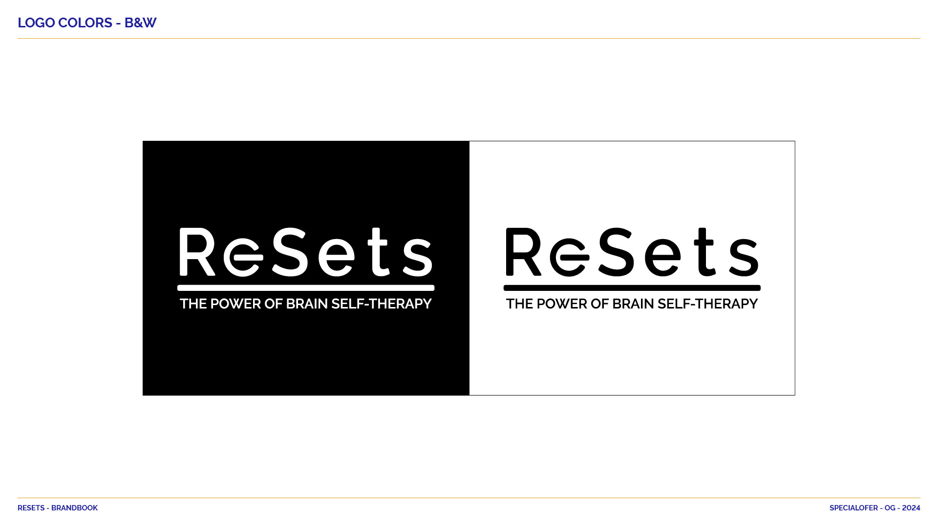 Resets is an AI startup treating trauma by monitoring brainwaves to help the brain reboot. I built a clean, minimal brand around this core idea, using the on/off symbol as the letter E making the logo feel like a calm, smart system command.